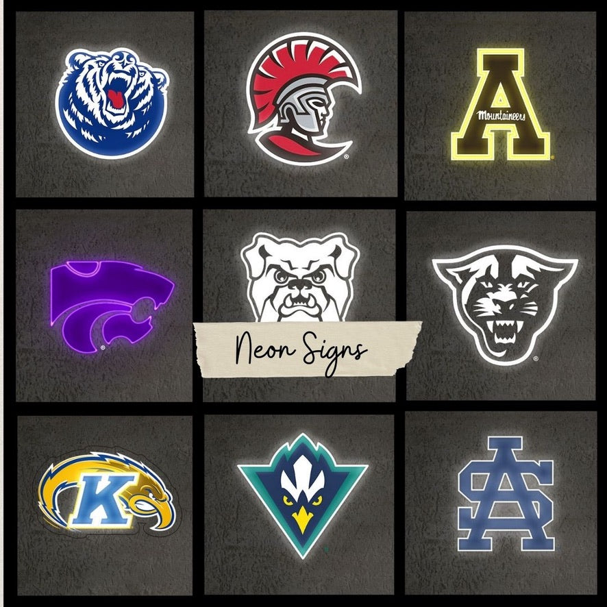 Shop your sorority, fraternity or college collections for Script and Greek Letter LED Neon signs, plus College logo & mascot UV print LED neon signs. Bright, vibrant and made in the USA.