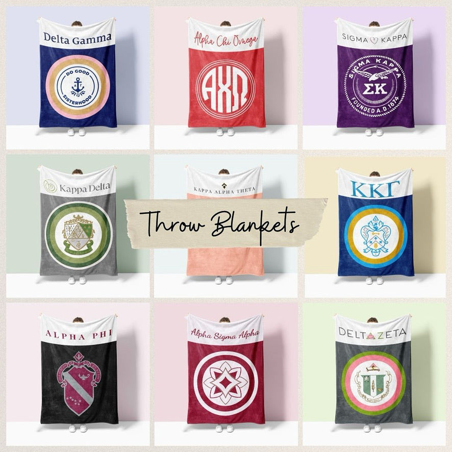 Shop our cozy soft XL 60x80 Sherpa College and Greek Blankets with styles that will fit any dorm or room. Perfect for gifting for any college student, family or alumnae, Big and Little, alike!