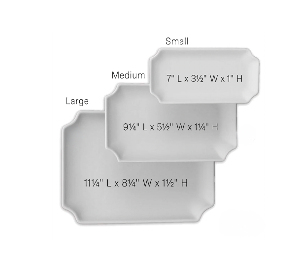 - Medium: 9¼" L x 5½" W x 1¼" H