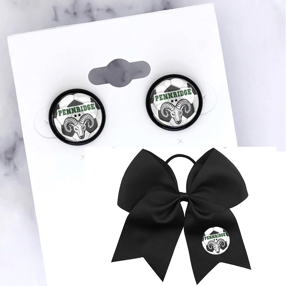 PHS Soccer Ball Earrings and Bows Set