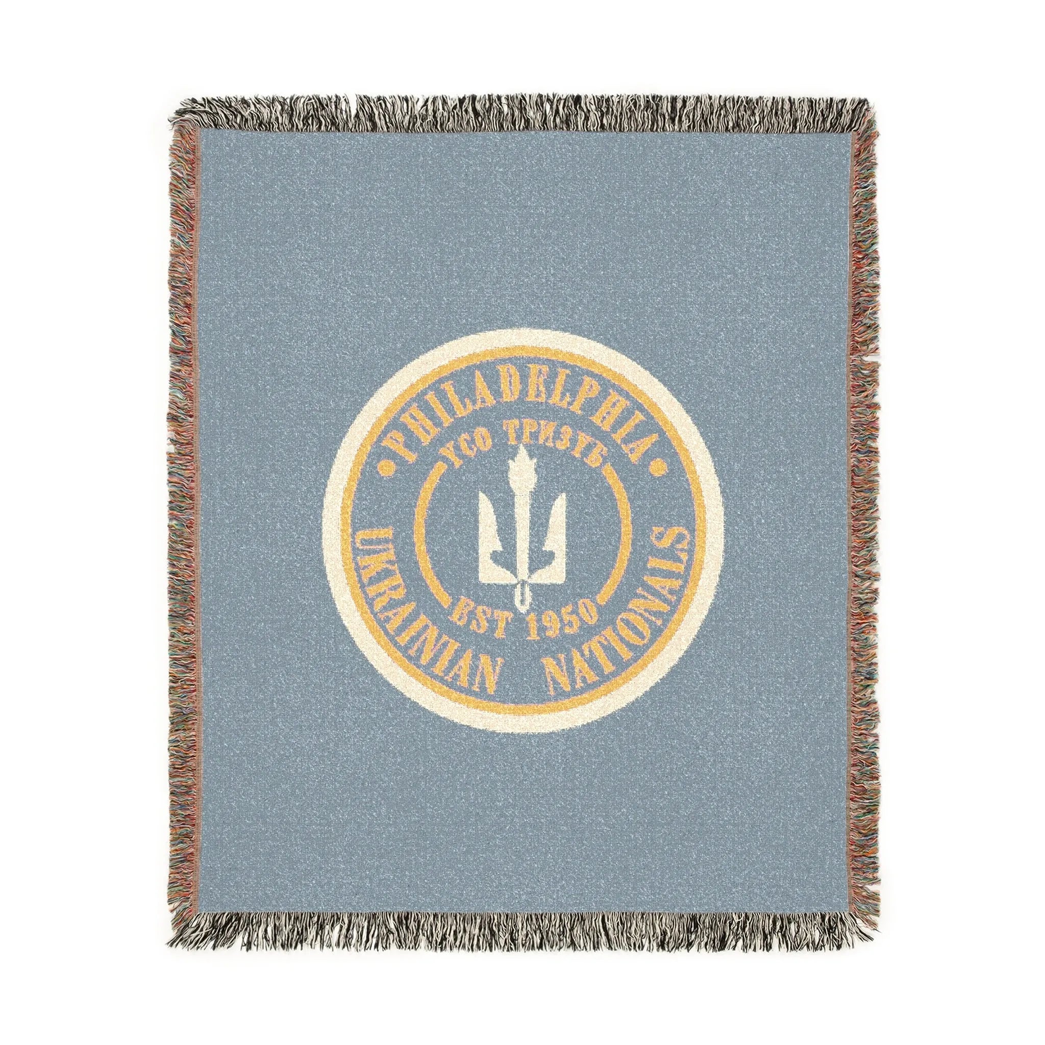No need to sit on the grass! This woven picnic blanket is perfect for game days. Show your Ukie pride as you watch your star from the sidelines. This woven blanket is features the official Philadelphia Ukrainian Nationals Seal!